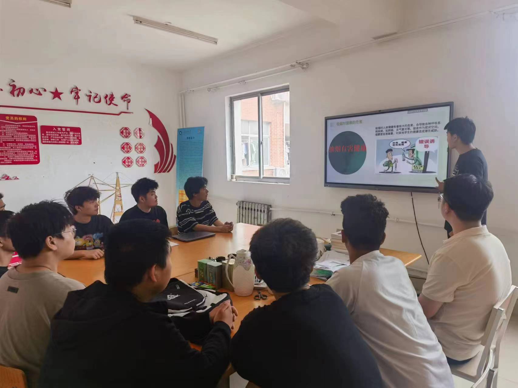 活动开始,负责人带领大家共同学习了吸烟的危害性,尤其是吸烟对于青少年的巨大危害,同时普及了无烟校园的好处及戒烟的方法。随后,同学们积极分享个人对于烟草危害的认识,使现场活动气氛更加活跃起来,同学们纷纷表示将积极支持无烟行动,为自己和他人的健康负责。最后,参加活动的同学在“无烟校园,从我做起”承诺书上进行签名,表达自己对无烟校园的支持,作出对无烟校园的承诺。