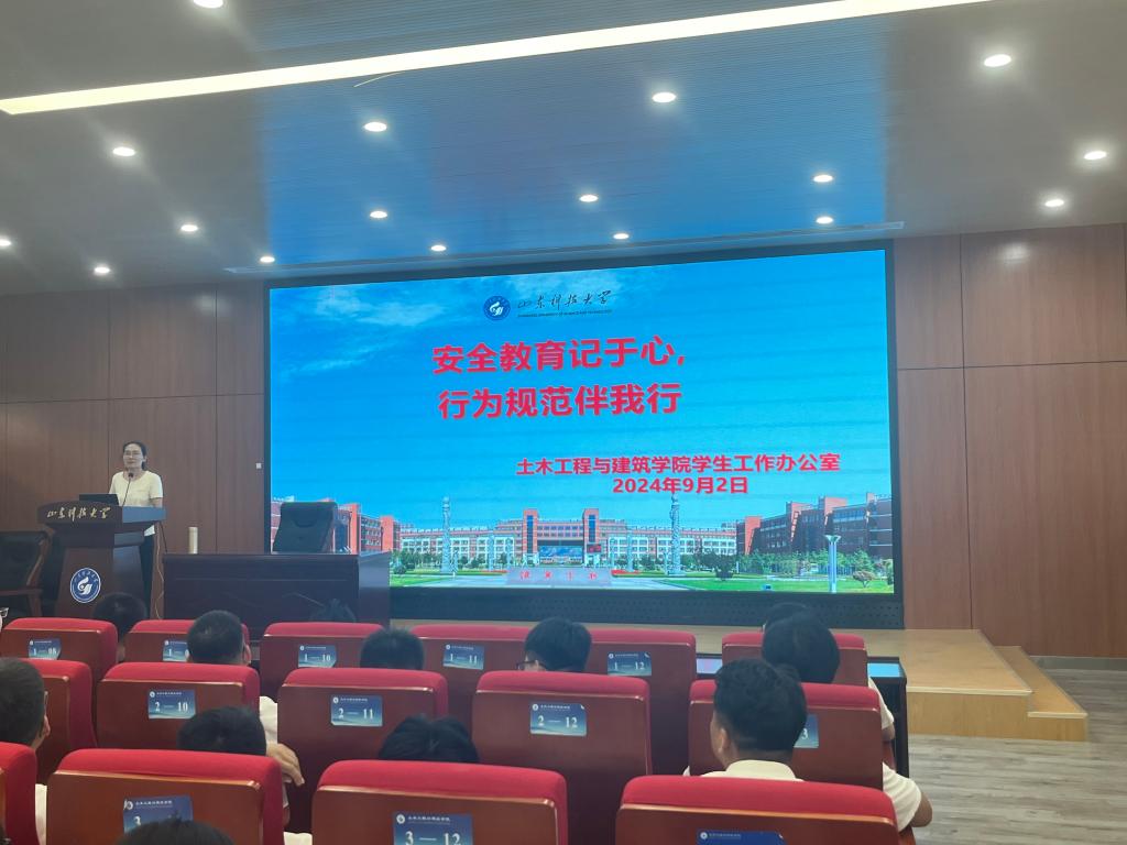 辅导员史卫平老师作《安全教育记于心,行为规范伴我行》辅导讲座,结合校园实际案例对员工违法违纪现状、违纪处分及其种类与适用、考试违纪及作弊、处分程序等方面进行详细解读,引导新生塑造良好的道德品质,明确校规校纪,守住安全责任底线,共同营造和谐稳定的校园环境。
