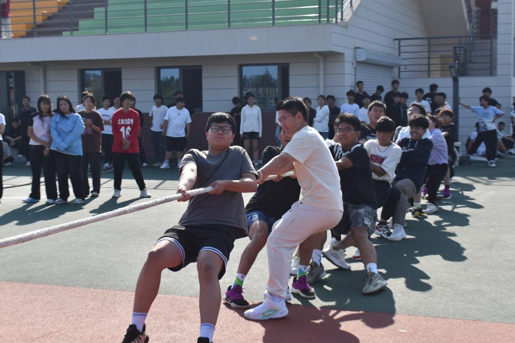 比赛前,参赛队伍进行了热身,展现出饱满的精神状态。随着裁判的一声哨响,比赛正式开始。每一场比赛都充满了紧张与激烈的竞争,参赛选手们咬紧牙关、全力以赴,拼尽全力向后拉绳子,场边的同学们则齐心协力为他们加油助威,场面十分壮观。经过数轮激烈角逐,最终来自土木三班的队伍脱颖而出,夺得了本次比赛的冠军,建筑一班、建环二班、土木六班、城空二班、建筑二班分别位列第二至六名。