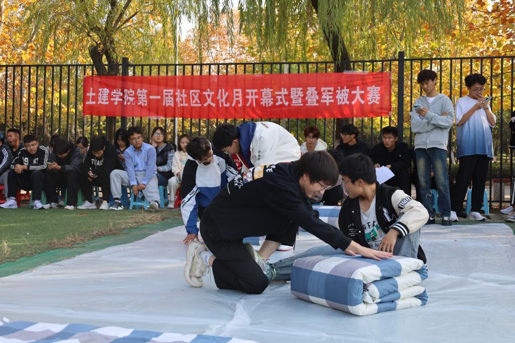 此次叠军被比赛包括四个环节:开幕式、走走叠叠、心有灵犀、叠军被比拼。为增加观众的参与感与积极度,比赛过程插入了趣味多多的中场游戏环节,以及文艺部同学带来的精彩节目,比赛仍以叠军被为中心,在叠军被前增加了趣味环节,极大地激发了同学们的积极性与参与感。经过激烈比拼,获得一等奖的是GA15-601宿舍,获得二等奖的是GA15-612、GB2-108宿舍,获得三等奖的是宿舍GB2-111、GB2-2003、GB2-134宿舍。