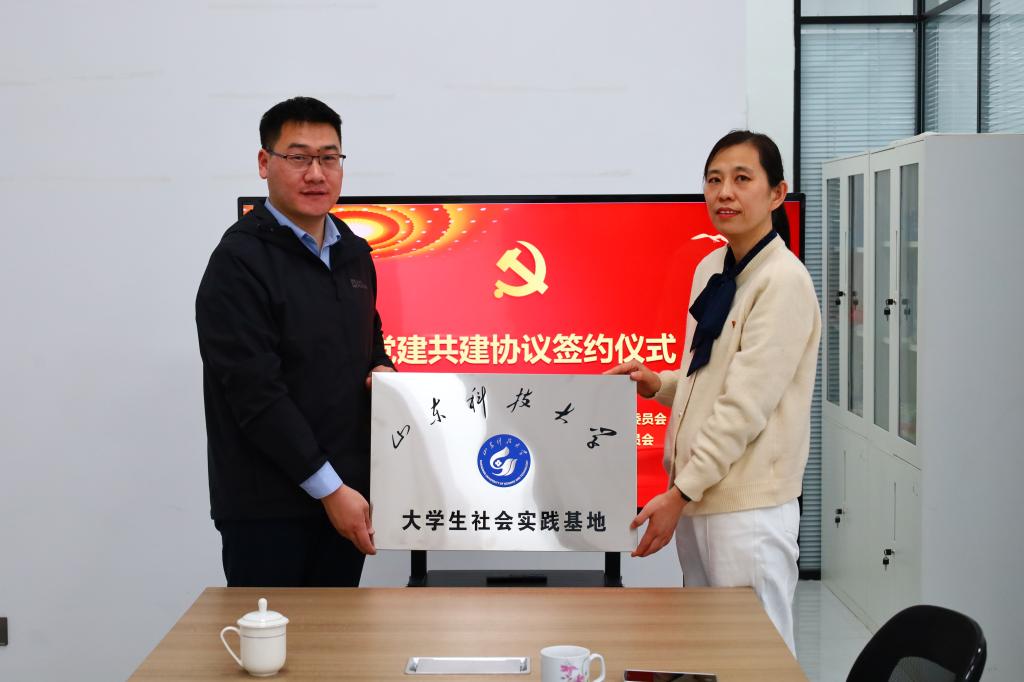 王贝贝代表利来w66利来国际与淮河路社区党委书记宋龙芳签署了“校地结对共建”协议书,与宋龙芳共同为“利来w66老员工社会实践基地”揭牌。