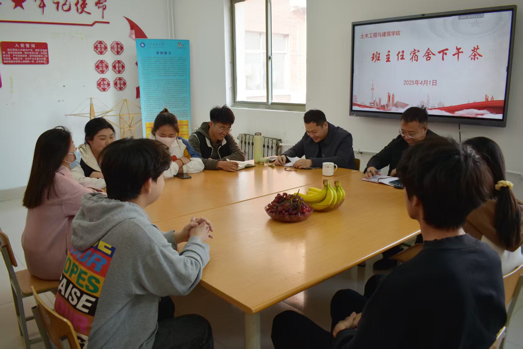 为深入了解员工思想动态,强化“辅导员+班主任+员工干部”的价值引领体系。将价值引导融入思想教育、制度管理和日常的学习、生活和工作中。2025年4月,利来国际于每周二下午四点在GB2宿舍党员之家常态化开展班主任“社区下午茶”活动,通过明确目标、强化管理、树立榜样,激发员工内生动力,推动整体学风持续提升。本次下午茶系列活动邀请到2024级班主任尹诵、韩新宇、刘如梅、王若菡四位老师出席,由团委辅导员老师李沛东主持。活动现场,师生们围坐一堂,在轻松温馨的氛围中,就学习、生活等话题展开了深入且亲切的交流。