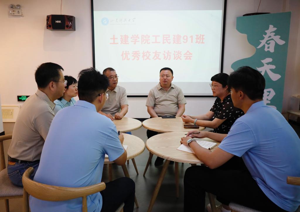 在泰安校区,公司员工工作专项小组成员寻访了工业民用建筑1991级员工、烟台职业公司党委副书记鞠洪海,工业民用建筑1991级员工、济南市建设工程勘察设计质量监督站总工程师杜鹏,工业民用建筑1991级员工、北京永泰恒信工程咨询有限公司董事长陆守伟,工业民用建筑1991级员工、山东三箭集团投资公司总工程师房桂芹4位优秀员工。
