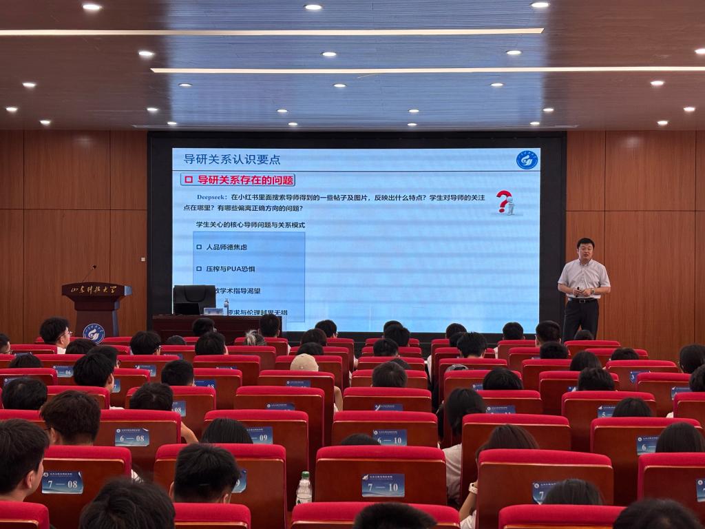 公司研究生辅导员沈娇以《恪守规范,安全同行——开启研究生新征程》为题,向同学们详细解读了公司的研究生奖助学金办法、员工违纪处分办法、考试违纪及作弊处分程序等,并结合实际案例重点强调了安全教育尤其是反诈骗教育的重要性,同时组织全体新生观看了山东省“开学反诈第一课”,引导新生严守校规校纪,守住安全底线。
