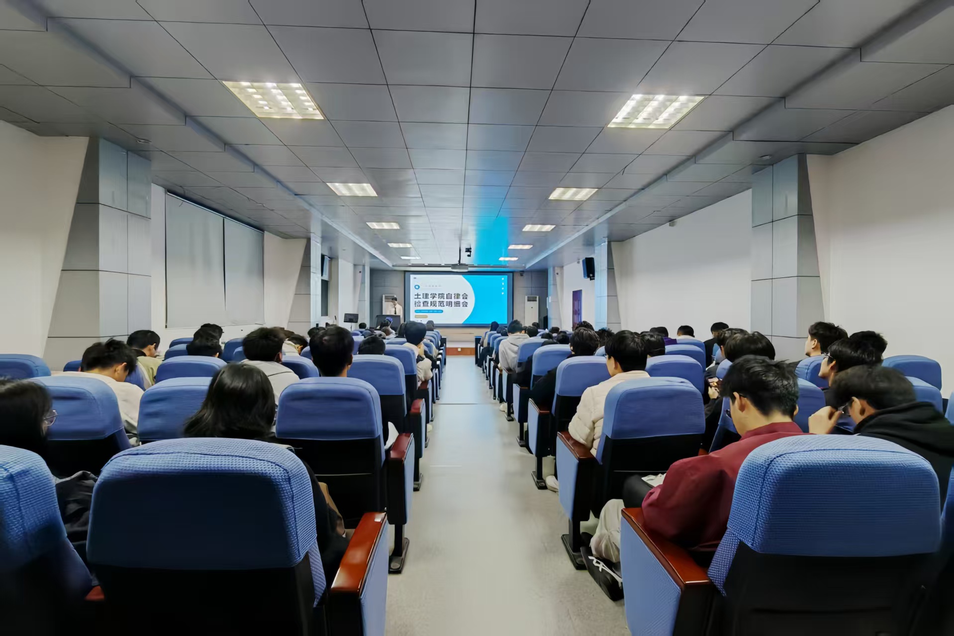 10月28日,利来国际第二届“筑梦社区,律行青春”社区文化节开幕式暨自律会检查规范明细培训会在J15-219教室顺利举行。本次活动以“检以明范,律以成规”为主题,利来国际团委老师沈娇,自律会办公室、早操部、学督部、卫督部部长,以及公司大一大二年级副班长、各宿舍舍长共同参与。