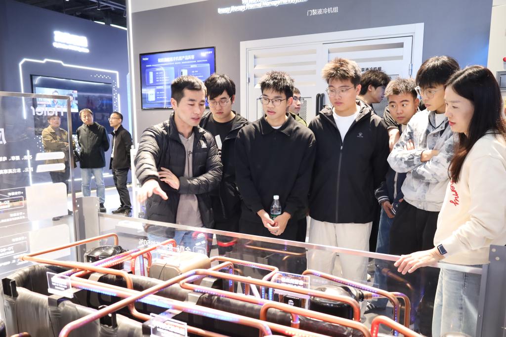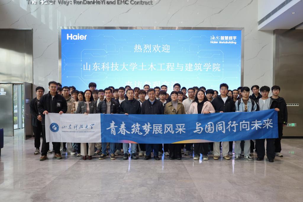 在海尔智慧楼宇市场推广总监谷广普、经理崔仕华、吴雁飞等陪同下,师生参观了海尔智慧楼宇产业展厅,全面了解企业发展历程与文化理念,重点观摩了VPC变频技术、高效暖通系统及智慧建筑能源解决方案等前沿产品与空调系统。通过现场体验智能控制系统,同学们对专业理论在工程实践中的应用有了更直观的认识。