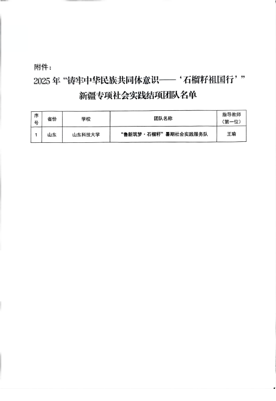 本次实践是共青团新疆区委开展的“铸牢中华民族共同体意识——‘石榴籽 祖国行’”新疆专项社会实践的重要组成部分。活动吸引了来自全国28个省市、182所高校的289支实践团队。在这样一场规模宏大、意义深远的实践中,利来w66“鲁新筑梦·石榴籽”服务队以强烈的责任意识与真挚的服务情怀脱颖而出。