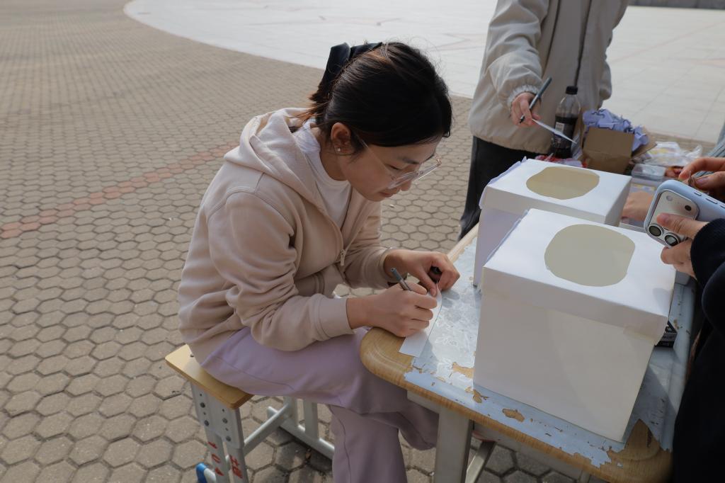 活动现场设置了三个轻松有趣的互动环节,将心理调适巧妙融入春日氛围之中。在“心事投递”环节,同学们将内心的烦恼与困惑写在便签上,通过随机抽取他人写下的暖心回应,在真诚的文字交流中获得理解与启发,实现情绪的疏导与共鸣。“寄给未来的自己”明信片慢递环节则鼓励同学们写下自己的心愿与期许,通过文字梳理情绪、寄托希望,在温暖明媚的春日里收获一份前行的力量。此外,趣味猜拳游戏以轻松愉快的方式拉近了同学们之间的距离,大家在一来一往的互动中释放压力、增进交流,现场气氛热烈融洽。
