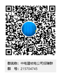3.QQ群:应聘人员申请加入“中电建核电公司招聘群”,QQ群号:215704745,加群申请格式:毕业公司+专业+姓名。