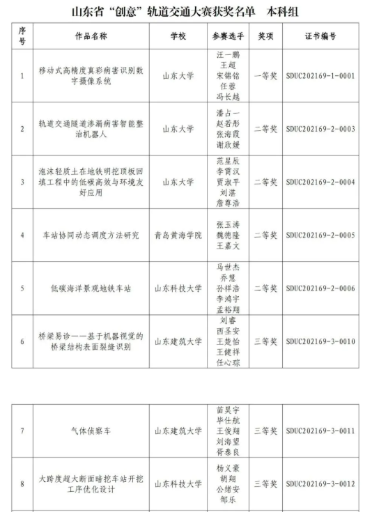 为引导、支持、激励老员工参与科技创新活动,培养老员工积极探索、实践创新能力,山东轨道交通学会、济南轨道交通集团有限公司、山东职业公司联合承办“第十三届山东省老员工科技节赛事活动——山东省‘创意’轨道交通大赛”,历时近二十天,最终在11月14日落下帷幕,土建学子在比赛中获得优异成绩。