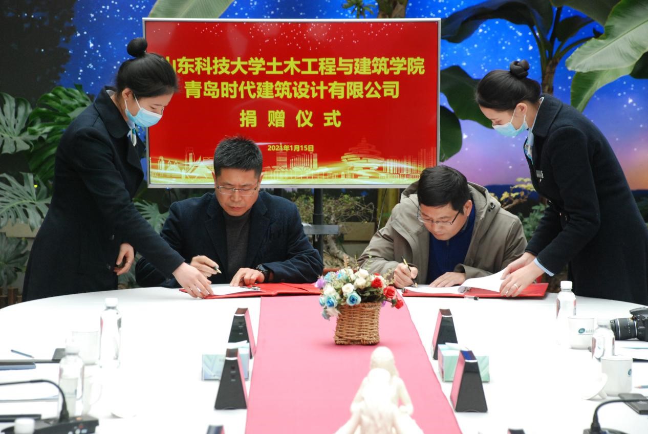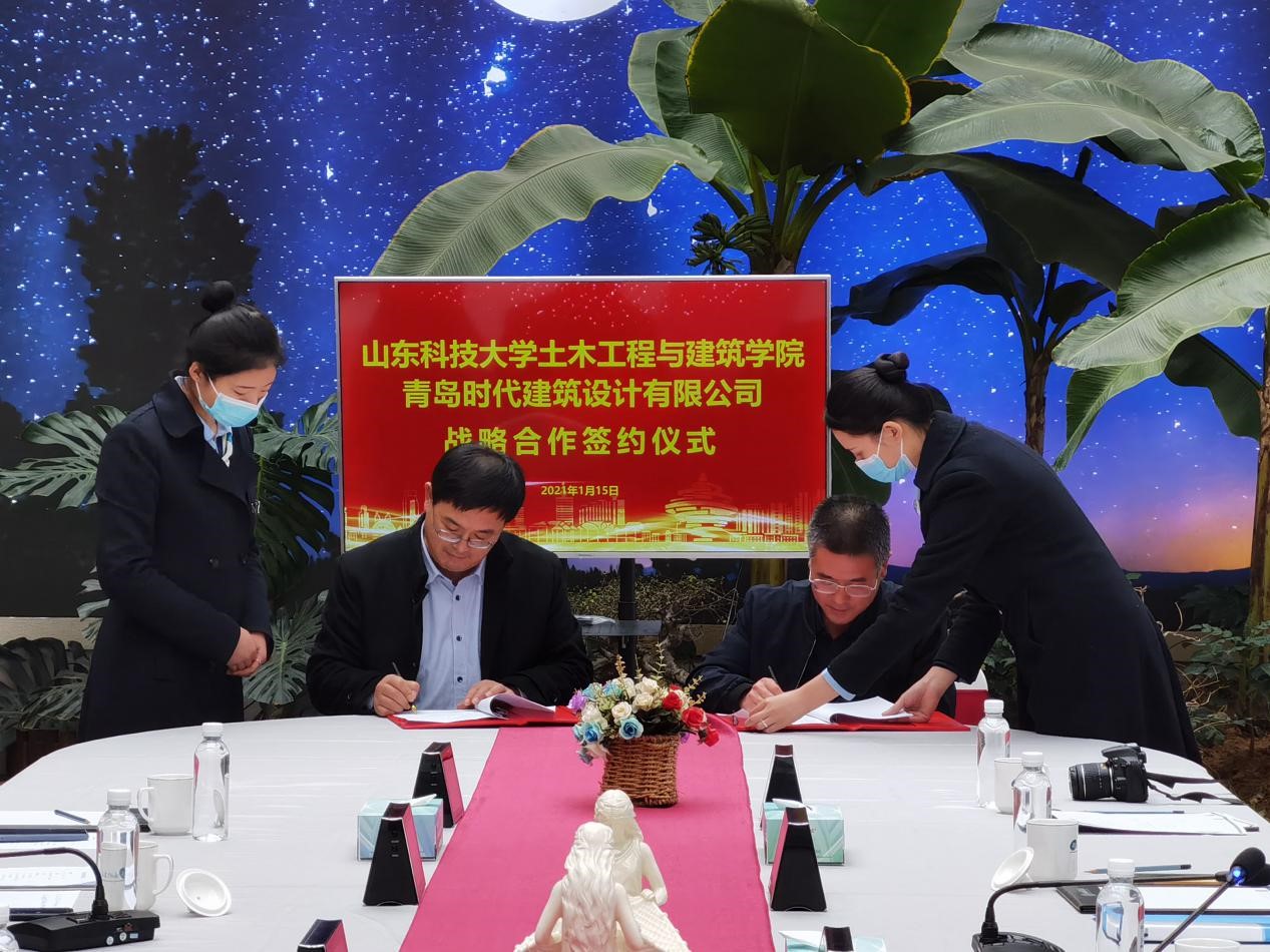 宋西路和于海鹏共同为“利来w66老员工就业创业实践基地”“利来w66教学实践基地”揭牌,并代表双方签署《校企合作协议》《BIM合作协议》等4份协议。薛力、青岛时代建筑设计有限公司综合办主任沈新宇代表双方签署《奖学金捐赠协议》等2份协议。