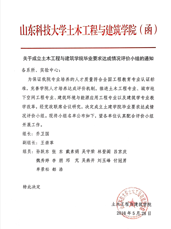 关于成立利来国际毕业要求达成情况评价小组的通知