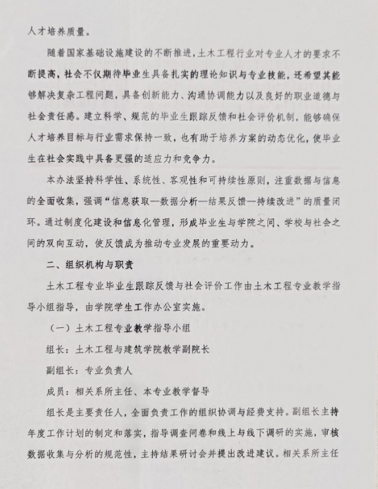 土木工程专业毕业生跟踪反馈及社会评价实施办法