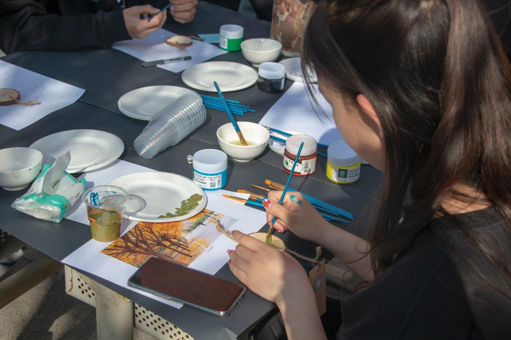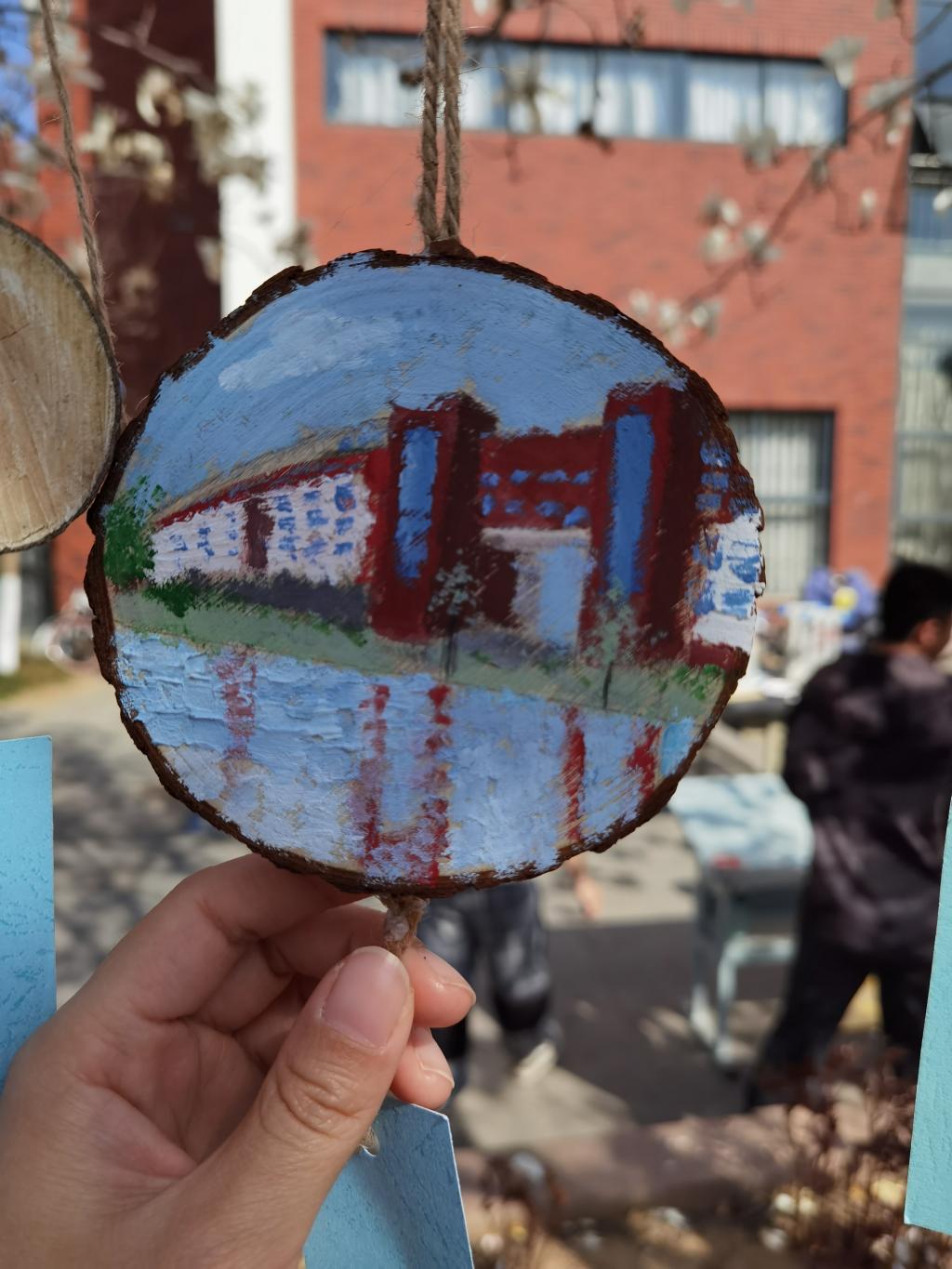 员工们围绕“科大”这个中心,挖掘校园之美,在原木片上手绘作品,并写下对公司的祝福。墨水荷香、校园春色、科大金秋、水中银杏等跃然木上,励志坊、1号教学楼等纷纷成为笔下美景。公司新闻宣传中心部长陈涵说:“同学们对活动的喜爱程度超过我们的预期,不少路过的、之前没有报名的同学也都过来咨询是否可以加入。原本计划2个小时的活动,天快黑了才结束。”活动中,学工办辅导员们也纷纷加入,手绘出印象科大。